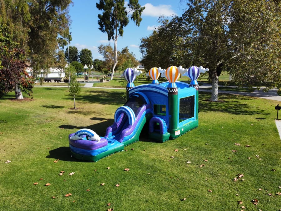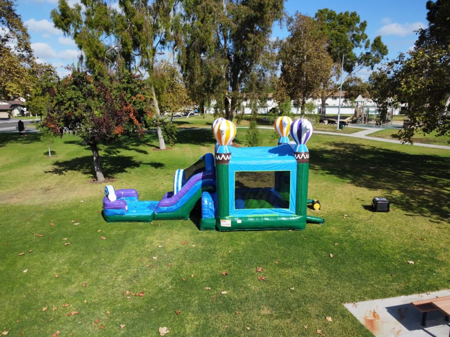 The Hot Air Balloon combo offers a 13’x13’ bounce area, a basketball hoop and a slide designed to keep children entertained for hours. This unit is suitable for backyard parties, community events, church events, fairs and festivals and much more. with a max capacity of 6-8 children or 800lbs. This unit requires a 35x15 set up area and a standard 15 amp, 120 volt outlet. This unit can be used wet or dry.