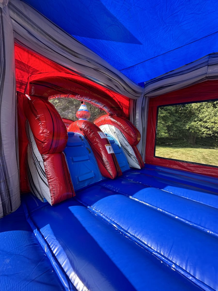 The Titanium combo offers a 13’x13’ bounce area, a basketball hoop and a slide designed to keep children entertained for hours. This unit is suitable for backyard parties, community events, church events, fairs and festivals and much more. with a max capacity of 6-8 children or 800lbs. This unit requires a 35x15 set up area and a standard 15 amp, 120 volt outlet. This unit can be used wet or dry.