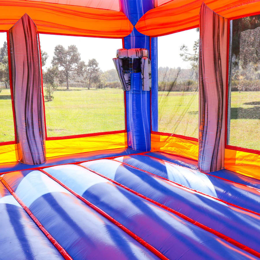 The XL Bounce house offers a 20’x18’ bounce area and two basketball hoops to keep children entertained for hours. This unit is suitable for backyard parties, community events, church events, fairs and festivals and much more. with a max capacity of 6-8 children or 800lbs. This unit requires a 30'x25' set up area and a standard 15 amp, 120 volt outlet. This a dry unit only.
